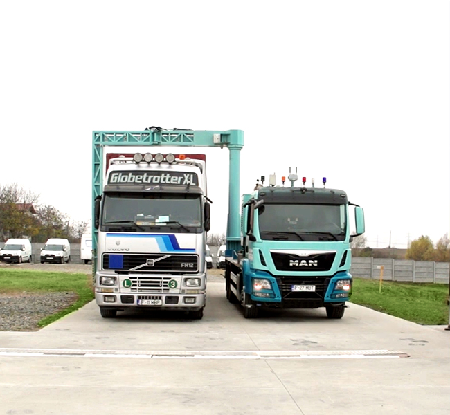 ML64 is a unique, highly versatile mobile imaging system for trucks and vans with 3 scanning modes, managed by a “driverless” subsystem that controls all the commands and parameters of the truck. Tudor Tech ML64 uses a high-resolution transmission imaging system comprising of in-house designed electronics and a dual-energy 6/4 MeV Linear Accelerator (LINAC) that is able to handle the most difficult situations and very high-density cargo (345mm steel penetration). High mobility on public road driving due to full conformity of EU-regulation related to total load and load per axes. Highest ground clearance gives better mobility off-road. Based on our international patented concept, the ML64 operators are placed outside of the exclusion area. This ensures that there is no professional exposure for them but also that they are free from harm in case of an incident during the scanning process.